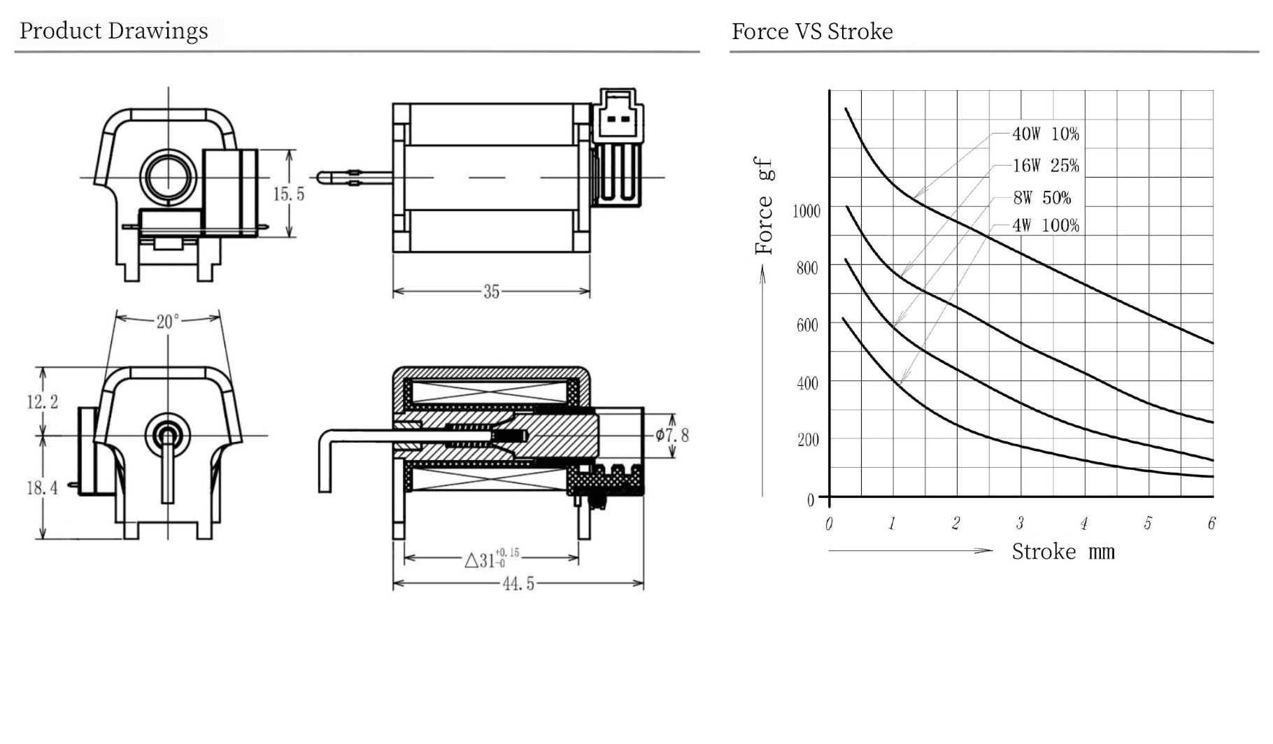 초기 추력: 0.5N